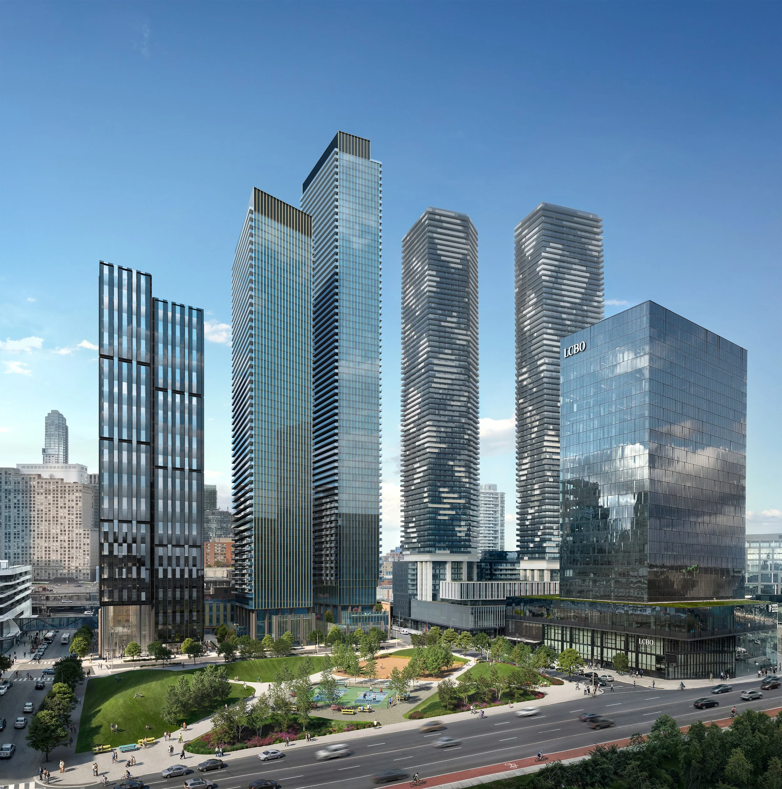 The LCBO Lands are part of the Sugar Wharf master-planned community in Toronto's eastern waterfront. Envisioned by Menkes Developments, Phase 2 of Sugar Wharf will comprise of three residential towers with more than 2,600 units, including a purpose-built rental apartment; an elementary school and a children's daycare.